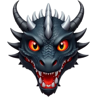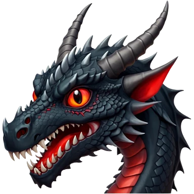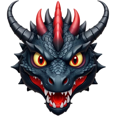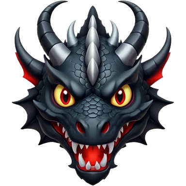 A terrifying black dragon with red brillants eyes, great black horns. emoji