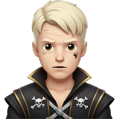 animated emoji for a player called prophet of doom I Dont Know shruging emote needs to be white male space pirate themed and dark aesthetic emoji