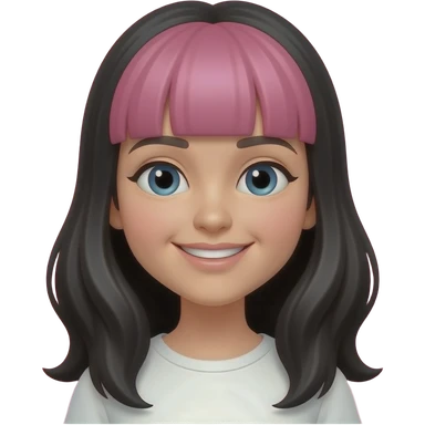 pink, with bangs, smile, long hair pink back ground, black hair emoji