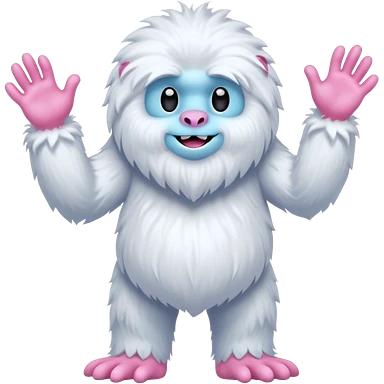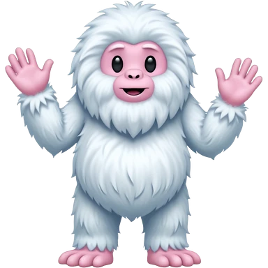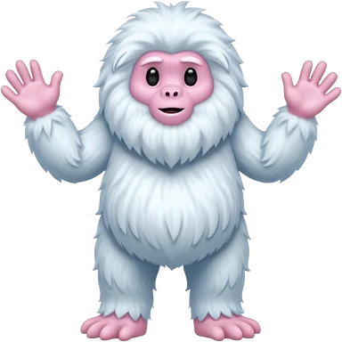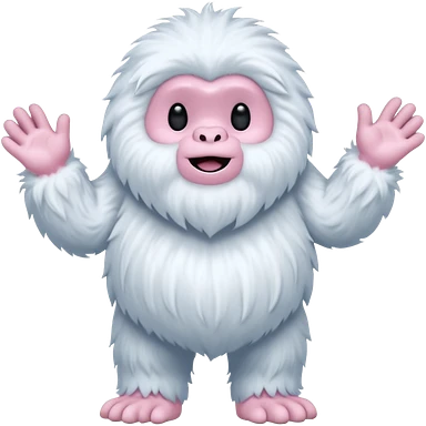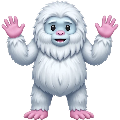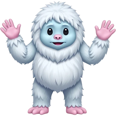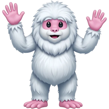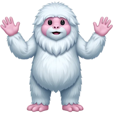 A fluffy, white creature resembling a yeti stands upright, featuring a round body and long, shaggy arms. Its face is smooth with a simple, flat mouth and no visible eyes. The hands and feet are pink with claw-like digits, and the creature has a whimsical, cartoonish appearance emoji