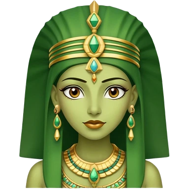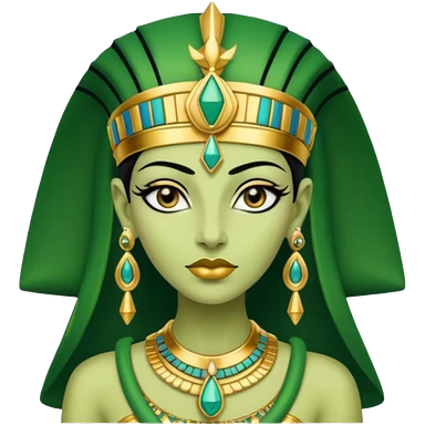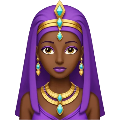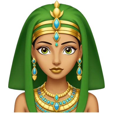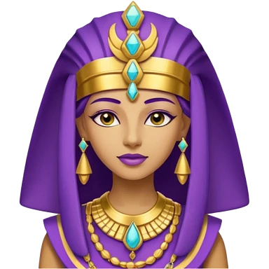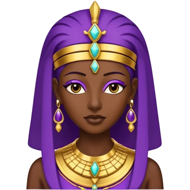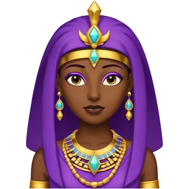 A graceful pharaoh queen wearing a tall crown, elegant posture, and holding a small sacred scroll. emoji