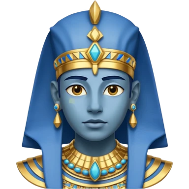 A regal pharaoh with golden headdress, calm stern eyes, and holding a crook and flail with authority. emoji