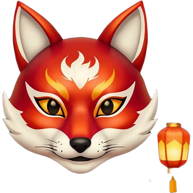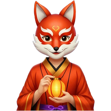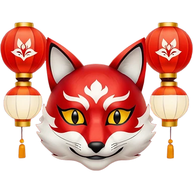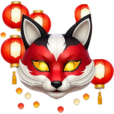 kitsune mask, worn by a festival performer at night, paper lanterns in background, colorful bokeh lights emoji