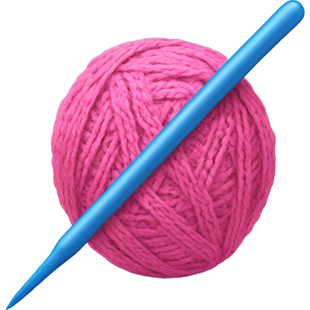 Pink yarn ball with blue crochet hook emoji