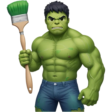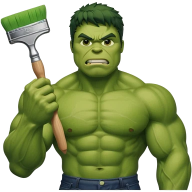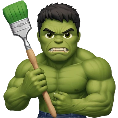 hombre gordo con pelo canoso y barba pintando un cuadro emoji