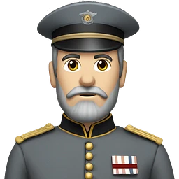 1860s soldier in a grey uniform with butternut color piping and soldier needs to have a full beard emoji