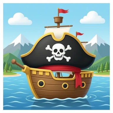 Pirate hat, pirate ship, and treasure emoji