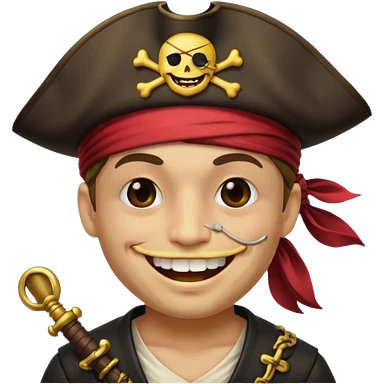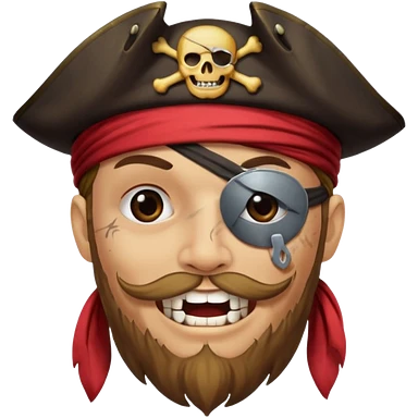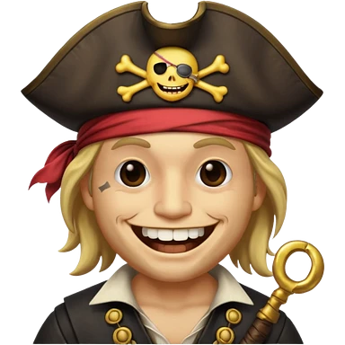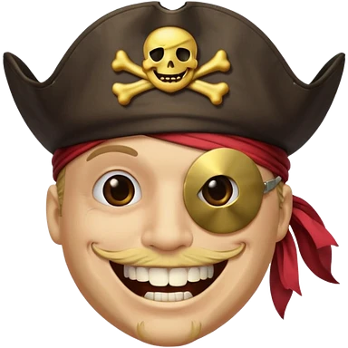Pirate with smiley face and a eyepatch and make with one tooth emoji