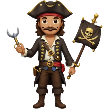 Pirate full body with dark brown wavy hair and mustache emoji | AI Emoji Generator
