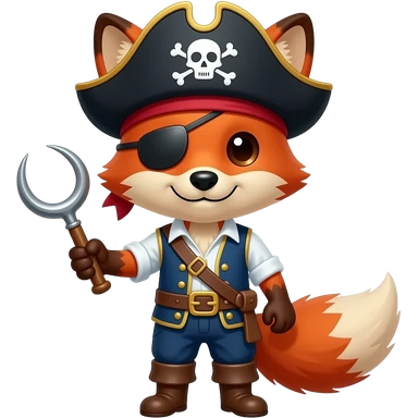 A red fox pirate hat holding a pirate hook emoji
