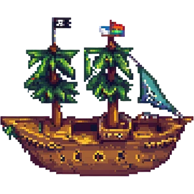 pixel art pirate ship with sails and Jolly Roger flag emoji