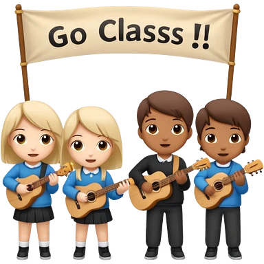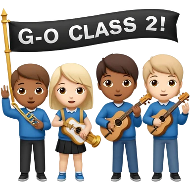 chibi style for students music play, 文案:为二一班打call 保留中文,不用英文 emoji