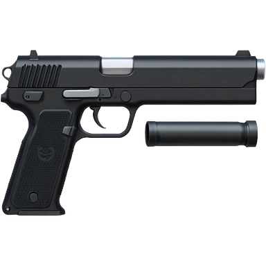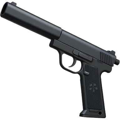 3D render of Silenced Pistol, secret agent spy gear aesthetic, hidden mechanisms, matte black metal with a long suppressor, sleek tactical texture, Apple emoji style, isolated on white background --v 6.0. emoji