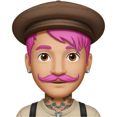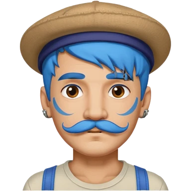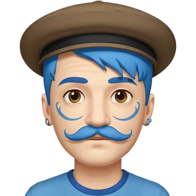 dark blue haired man curly hair and big earrings and and hat wearing emoji