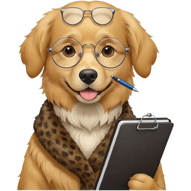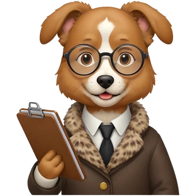Friendly dog with clipboard and pen, wearing round spectacles. emoji