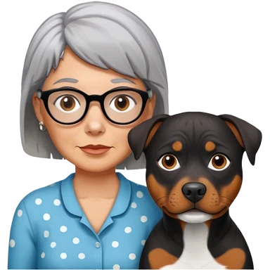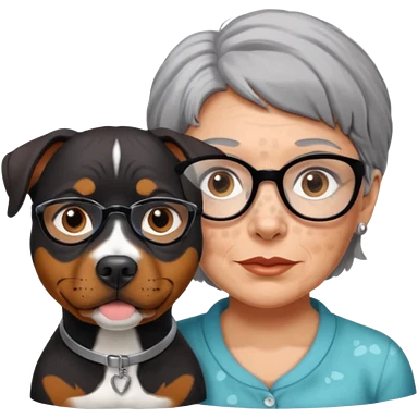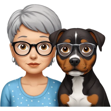 Pit bull Rottweiler mix with white muzzle and spots on muzzle next to older woman with really short grey hair emoji | AI Emoji Generator