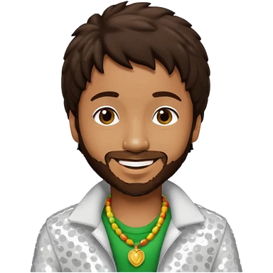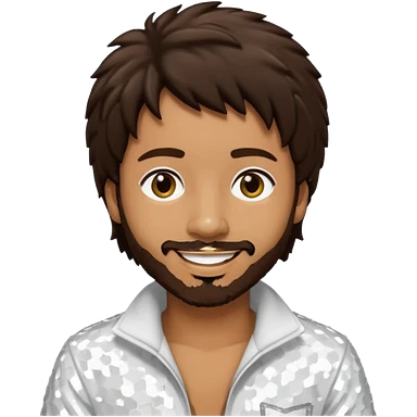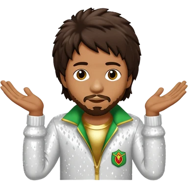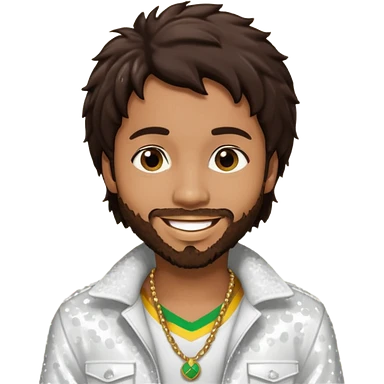 Shaggy, Reggae Rapper with dark brown hair, white sequin outfit emoji