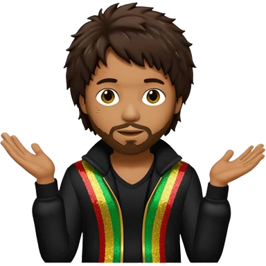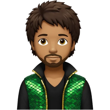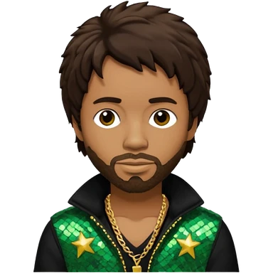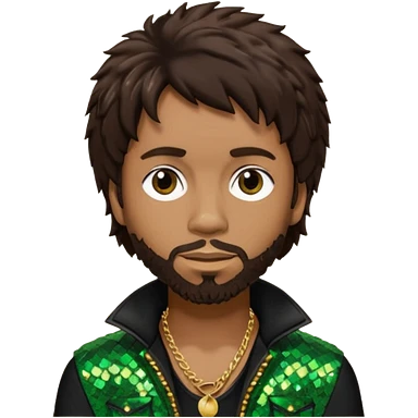 Shaggy, Reggae Rapper with dark brown hair, black sequin outfit emoji