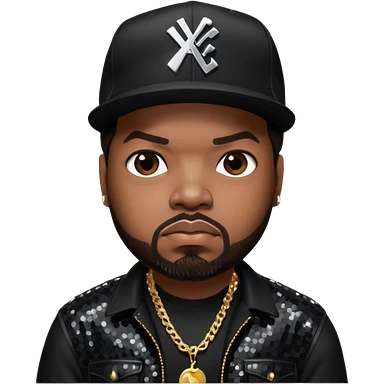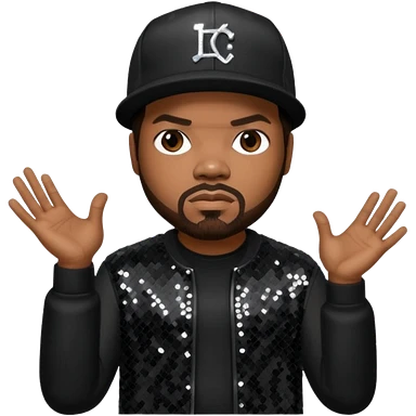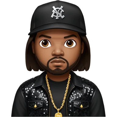 Ice Cube, Rapper with dark brown hair, black sequin outfit emoji