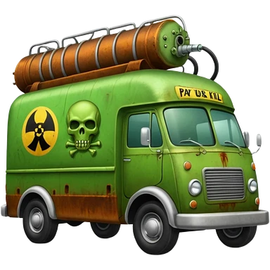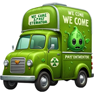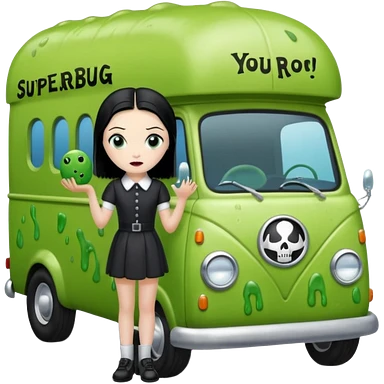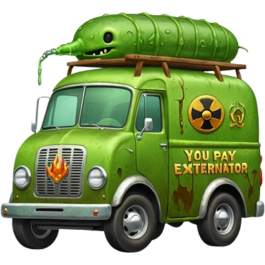 Heroic Wednesday Adam’s SuperBug Ron’s slime-oozing exterminator antique tall moving van hot rod(motto: You pay me now!) emoji