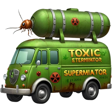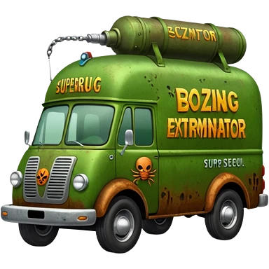 Heroic SuperBug Ron’s toxic-oozing exterminator superminator antique tall moving van (motto: Bombing creepy bugs is fun) emoji