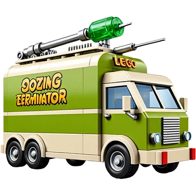 Heroic Lego SuperBug Ron’s toxic slime-oozing exterminator antique tall moving van hot rod(motto: We come You pay) emoji