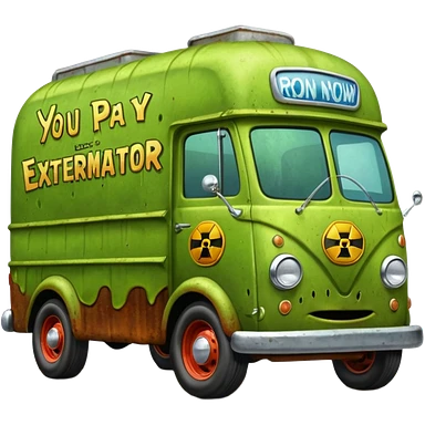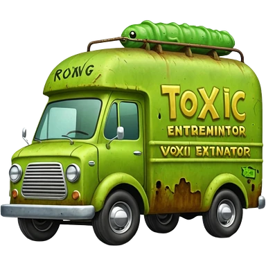 Heroic SuperBug Ron’s toxic slime-oozing exterminator antique tall moving van hot rod(motto: We come You pay) emoji