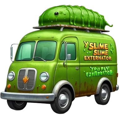 Heroic SuperBug Ron’s slime-oozing exterminator antique tall moving van hot rod(motto: We come You pay) emoji