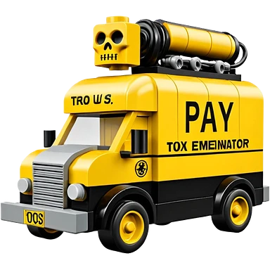 Heroic Lego SuperBug Ron’s toxic-oozing exterminator antique tall moving van hot rod(motto: We come You pay) emoji