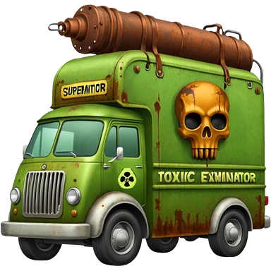 Heroic SuperBug Ron’s slime-oozing exterminator antique tall moving van hot rod(motto: You pay now!) emoji