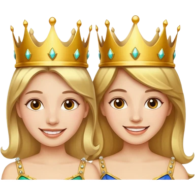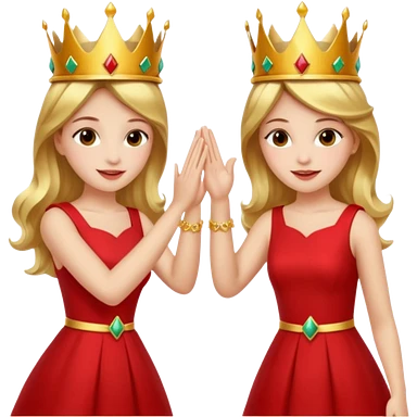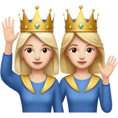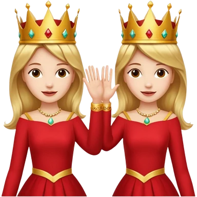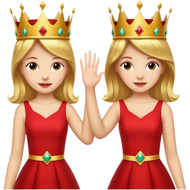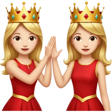 Two women wearing crowns and identical outfits giving each other a high five. emoji
