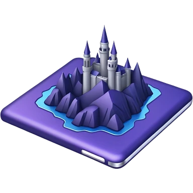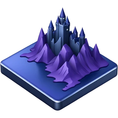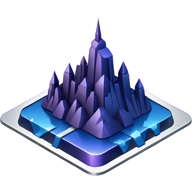 Landmark icon above the map. Colors: dark purple, dark blue, black, silver. Style: metallic, realistic emoji