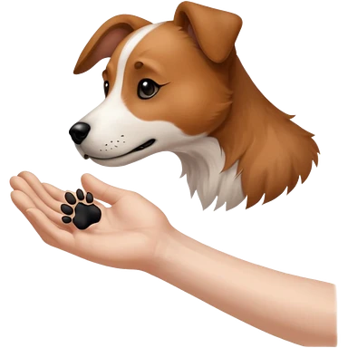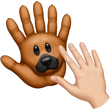 there is a drawing of a human hand gently reaching toward a dog’s paw. The dog has brown fur with black areas, and the paw is extended like it’s about to touch the person’s fingers emoji