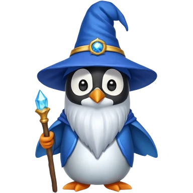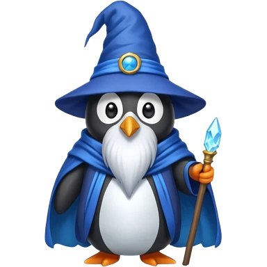 Pinguino vestito di blu un pochino piu chiaro e giallo con un cappello da mago emoji