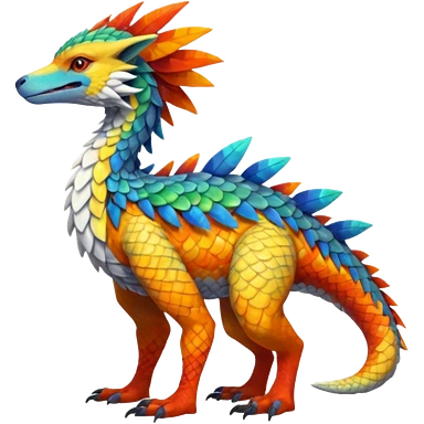 Colorful Scaly Feathery Fruity Iridescent Warm-colored Tropical Exotic Vernid-Sergal-Trico-Silvally-Nargacuga-fusion-hybrid-animal-creature, full body emoji