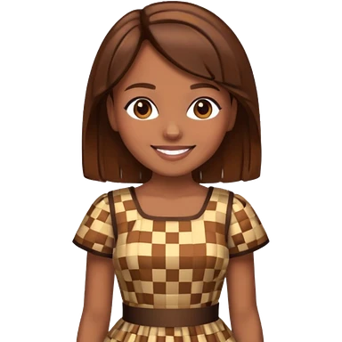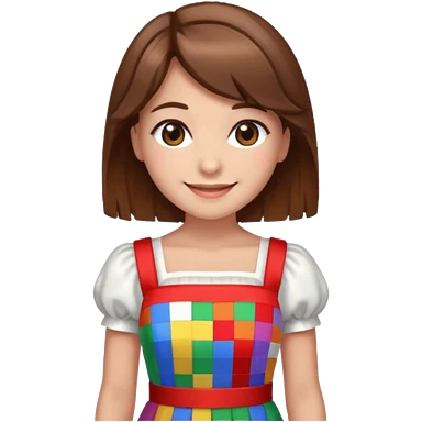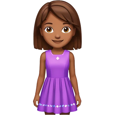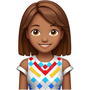 Persona pelo marron largo ligeramente rozado color de piel clara con ojos marrones labios finos nariz agileña top rosa y pantalon flare azul oscuro emoji