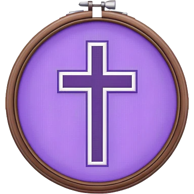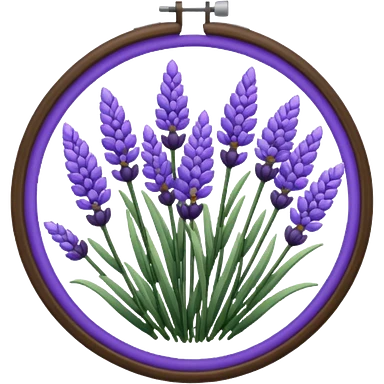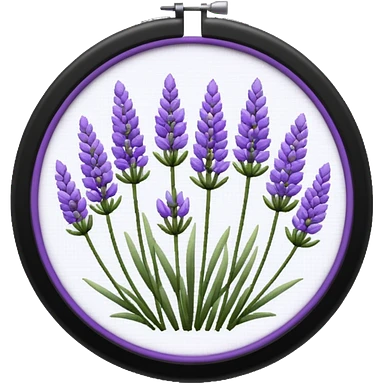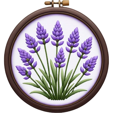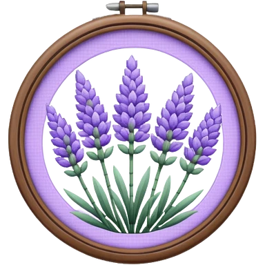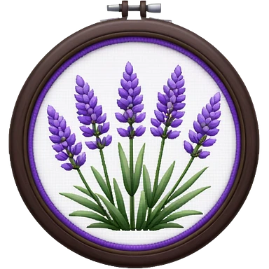 Pixelated Lavender inside a round purple-wooden Cross stitch frame emoji | AI Emoji Generator
