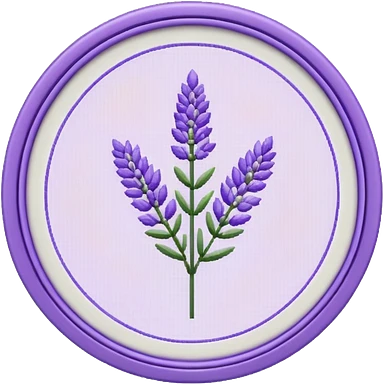 Pixelated Lavender inside a round pastel purple-whitish Cross stitch frame emoji