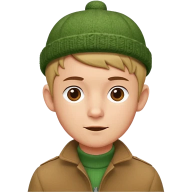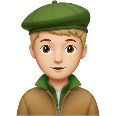 young man with pixie cut, green wool hat, tan jacket and pork chop sideburns emoji