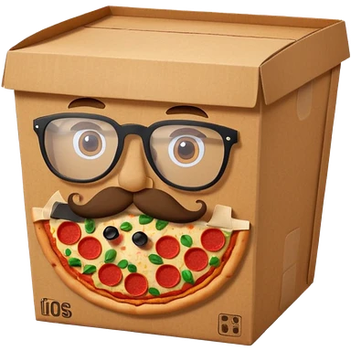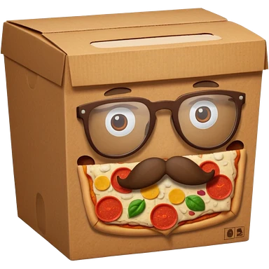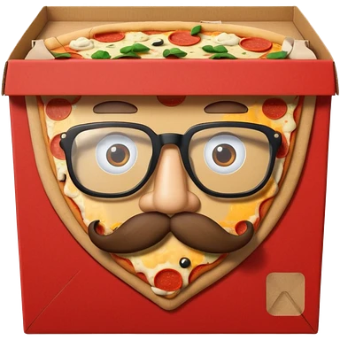 pizza take-out carton with glassess and mustache emoji