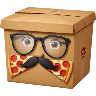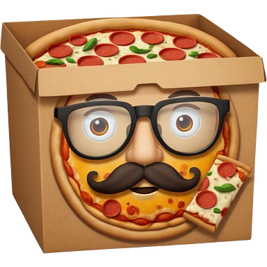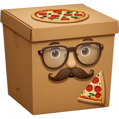 pizza take-out box with glassess and mustache emoji