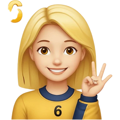 yellow smiling face girl with one hand flat under chin. With the number 6 on the left hand and the number 7 on the right hand emoji
