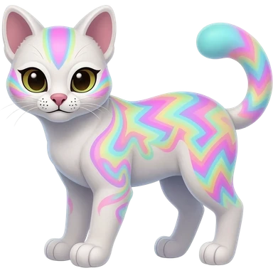 Colorful tropical tribal pale light fruity pastel white glorious iridescent divine exotic cute albino neon vibrant zigzagged cool beautiful fantasy-caracal-civet-genet-sergal-vernid-Gryphon-Cacomistle-Trico-oncilla-animal-Fakémon-hybrid-fursona (full body), facial markings, emoji