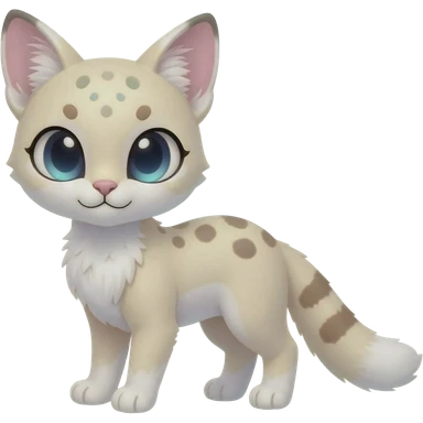 Colorful albino soft smooth silky pale light pastel white glorious divine exotic cute cool beautiful fantasy-caracal-civet-genet-sergal-vernid-Cacomistle-Trico-oncilla-animal-Fakémon-hybrid-fursona (full body) emoji