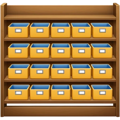 Japanese displayed on a storage shelf, arranged with horizontal variation and vertical consistency. emoji