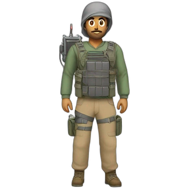 arab man wearing a keffiyeh and a plate carrier with many wires crossing the front and a single analog clock emoji