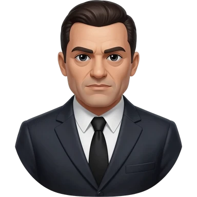 Mob boss in black suit, slick hair, gold chain, emoji
