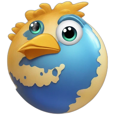 planet Neptune with a cartoon pensive chicken face emoji