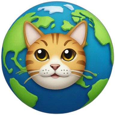 planet Earth with a cartoon grinning cat face with big eyes emoji