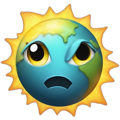 planet Sun with a cartoon sophisticated face with big courageous eyes emoji